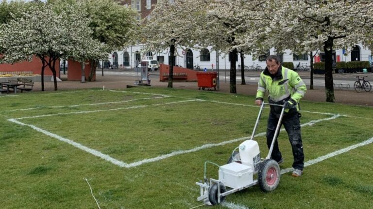 En Copenhage, Dinamarca, también están comenzando a establecer señales en el suelo, esta vez en parques públicos, para facilitar el mantenimiento de la distancia en las actividades familiares de ocio