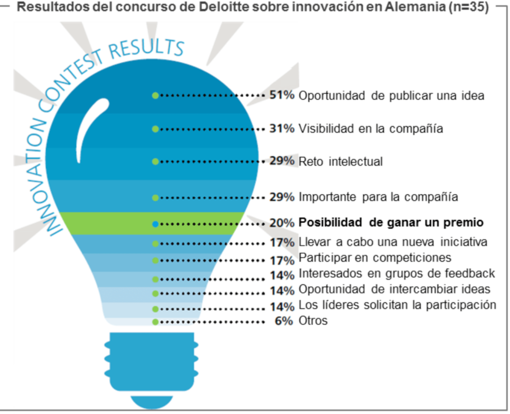 - Fuente: Nothing for money, Andersen, Murphy, and Börsch. 2016. Encuesta Deloitte sobre innovación: ya veis reconocimiento publicando la idea, en la compañía, reto intelectual (ya sale Maslow con la autorrealización…).