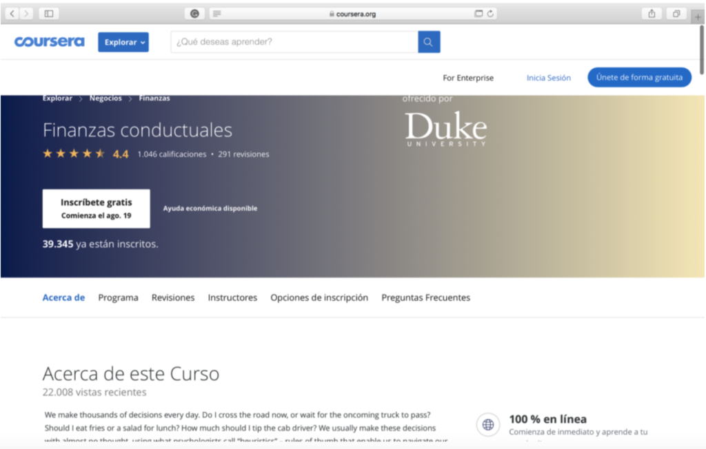 The second, Behavioral Finance Duke coursera.This course is intended to guide participants towards better financial choices. Learn how to improve your spending, saving, and investing decisions for the future.